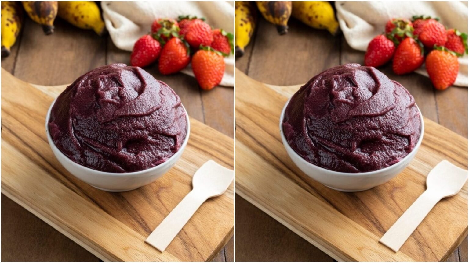 Exagerar no gelo não é a solução para dar corpo à bebida, já que ele derrete e dilui o sabor. A melhor estratégia é apostar em frutas congeladas. Banana e morango picados, mantidos no freezer, funcionam como espessantes naturais e garantem cremosidade sem comprometer o gosto intenso do açaí.