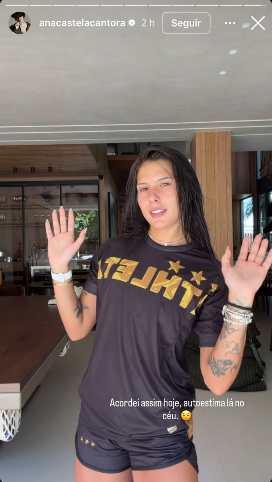Em um tom descontraído, a cantora utilizou seus stories no Instagram para documentar sua manhã de treinos. Vestindo um conjunto de academia, Ana Castela brincou sobre a possibilidade de encerrar sua carreira musical para se dedicar integralmente ao futevôlei, afirmando com humor que “Foi muito boa a minha época de cantora, mas agora eu virei uma atleta profissional no futevôlei”.