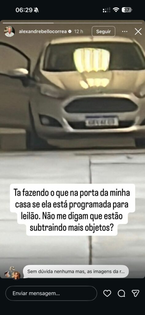 O imbróglio ganhou novos capítulos nesta semana. Na segunda-feira (9), Alexandre Correa publicou a foto de um carro estacionado no imóvel, questionando se objetos estariam sendo subtraídos da casa, que está programada para ir a leilão. No dia seguinte, ele divulgou um vídeo afirmando que recebe informações constantes de moradores do condomínio sobre a movimentação no local.