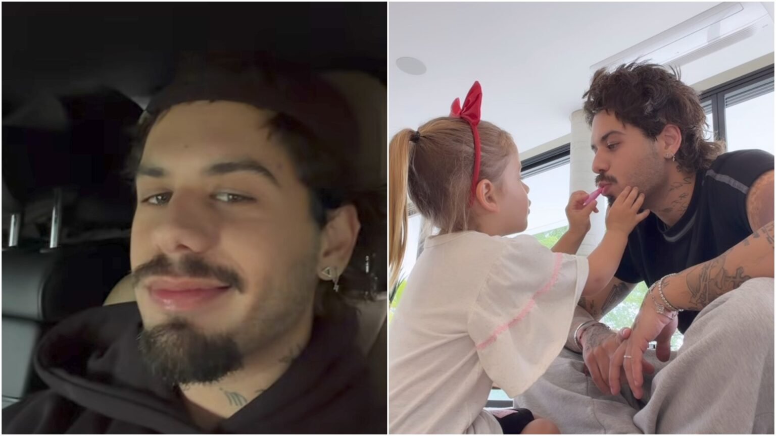 Na postagem, Zé Felipe inicia a brincadeira perguntando à filha: “Você quer maquiar o papai?”, recebendo um animado “Sim!” como resposta. Ao questionar qual produto ela pretendia usar, Maria Flor não hesita: “Rosa”. Entrando no clima, o cantor ainda pergunta, em tom divertido, se o “salão” improvisado também fazia cabelo: “Aqui você faz cabelo também ou só maquiagem?”, ao que a pequena confirma: “Cabelo.”