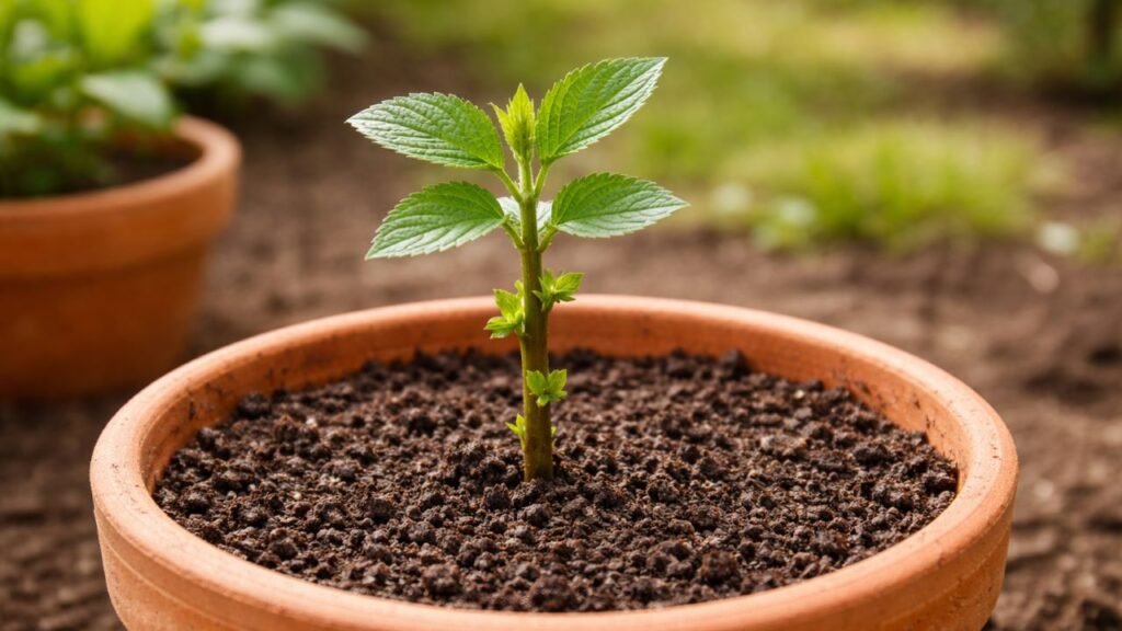 Após o plantio, a manutenção adequada do ambiente é essencial para a sobrevivência da muda. A rega deve ser moderada, realizada a cada quatro dias, mantendo o solo levemente úmido sem encharcar. A muda deve ser mantida em local iluminado, mas sem exposição direta ao sol, e protegida de ventos fortes ou mudanças bruscas. Após aproximadamente 30 dias, pode-se introduzir gradualmente a planta ao sol leve. O sinal mais confiável de que o processo de enraizamento foi bem-sucedido é o surgimento de novos brotos, indicando que as raízes estão formadas e a planta iniciou seu ciclo de crescimento de forma saudável, sem a necessidade de verificar o enraizamento retirando o galho da terra.